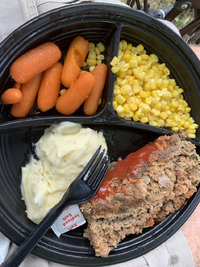 and keeps in a big cooler. This was his Cracker Barrel lunch on the second day he ran: