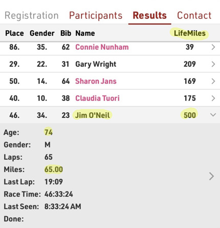 Jim was approaching 55 miles by the time I went to bed that night. He