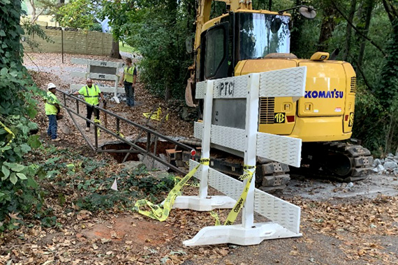 the Kedron ponds and the pavement gave way. The path was roped off for