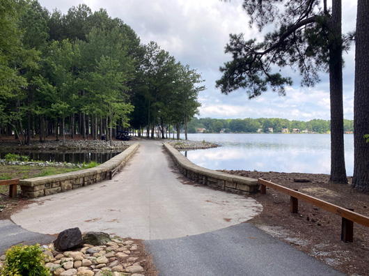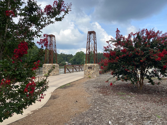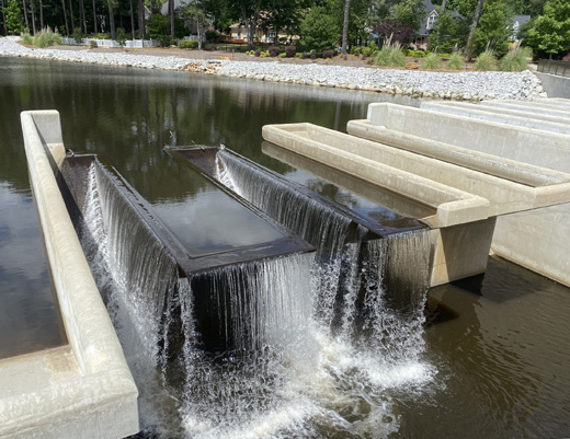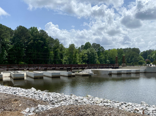 spillway at southern end of Lake Peachtree (close-up farther below)