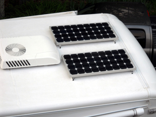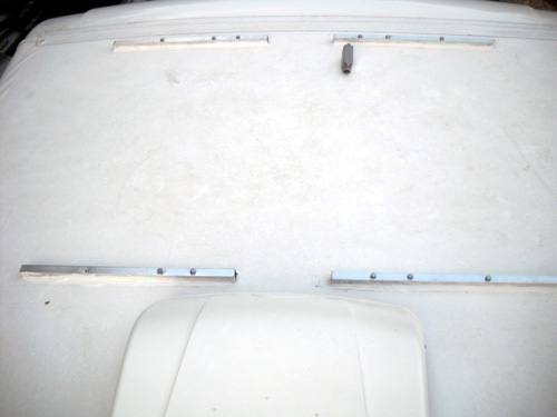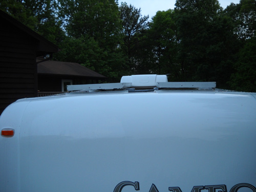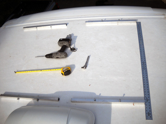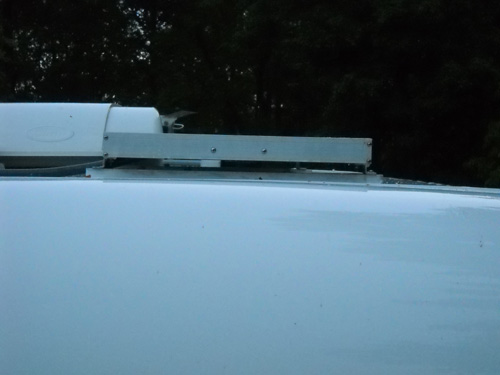 Mounting the tubes to the roof. Note the shadow cast by the A/C unit. It's a low profile unit; hopefully it won't cause any problems.