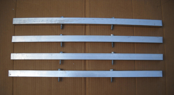 These are the 1" square aluminum tubes with 2" X 5/16" lag screws. I eventually added one more screw to each tube. I got the idea to use aluminum tubing from my friend, Paul in Oregon. I never would have thought of this.