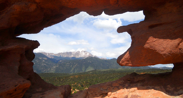 (Photo taken by Sue at Garden of the Gods in Colorado Springs, with Pike's Peak in the background)