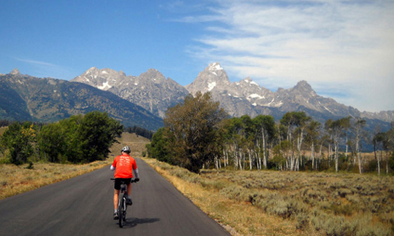 (Photo of Jim cycling in Grand Teton National Park, WY, taken by Sue)